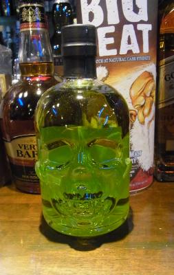 入れ物がドクロでいかにも、ただ黒いだけだろ?と思うが、味はきわめて個性的、なんとカカオ味!!アブサンとチョコレートは相性がいいと思うが、アブサンでこれを表現、他には無い発想に脱帽。