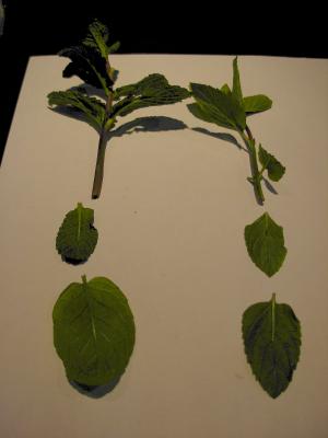 香りもちょっと違う、スペア・ミントと比べると香りは穏やかでより草っぽい。